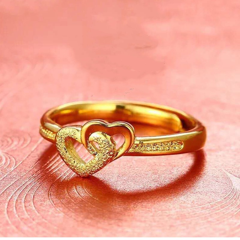 Sy 18k Saudi Gold Double Heart Romantic Heart Ring Gold Fashion Engagement Jewelry Female Couple Shopee Philippines